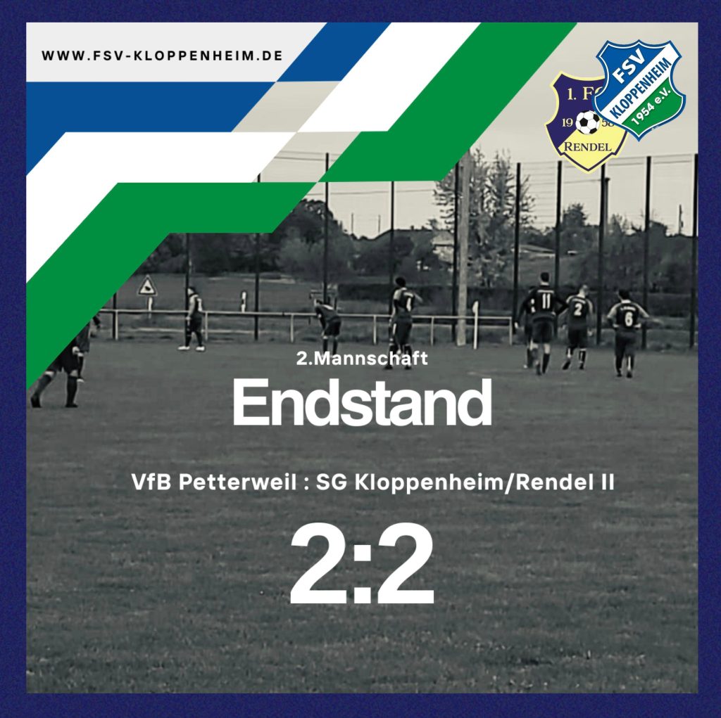 Im Karbener Derby konnte die Marburg-Elf nach einer langen Punktlos-Serie endlich mal wieder punkten. In einer umkämpften Partie holte die SG Kloppenheim/Rendel durch Tore von P.Müller und O.Knopp ein 2:0 Rückstand auf und brachten das Unentschieden durch eine gute Abwehrleistung dann auch gegen den Favoriten aus Petterweil über die Zeit.