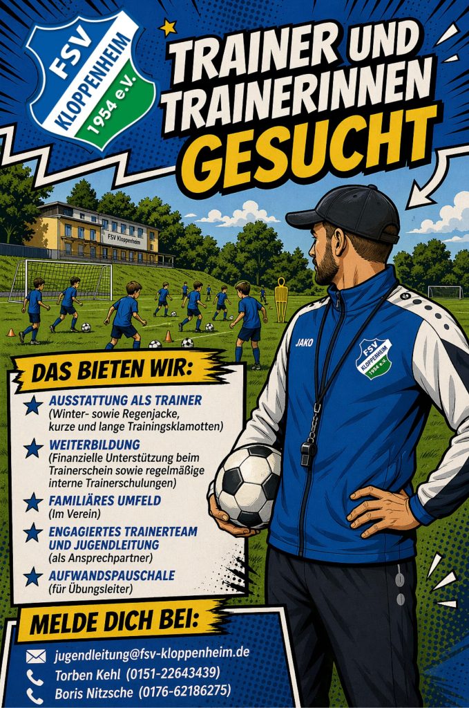 Ihr möchtet euch im Nachwuchsbereich des FSV Kloppenheim engagieren. Wir sind auf der Suche nach neuen Jugendtrainern und Jugendtrainerinnen für die neue Saison.