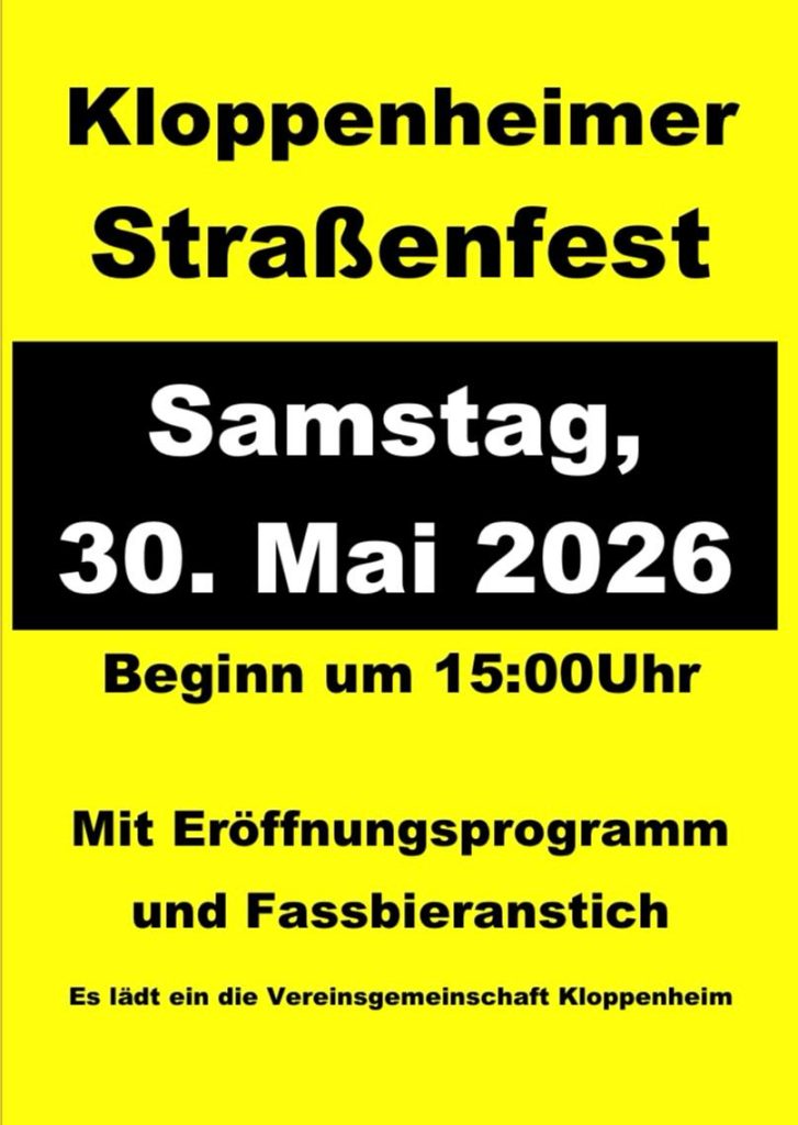 Samstag, 30.05.2026 – Kloppenheimer Straßenfest